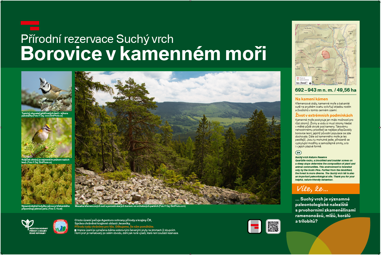 ​​​​​​​Formou národní přírodní rezervace jsou chráněny zejména pro Jeseníky typická horská prostředí (subalpinské bezlesí, horské smrčiny, rašeliniště), jediná národní přírodní památka chrání pozůstatky po hornické činnosti využívané jako zimoviště netopýrů. ​​​​​​​​​​​​​​Více o jednotlivých zvláště chráněných územích se dozvíte jejich rozkliknutím v tabulce níže:​​​​​​​